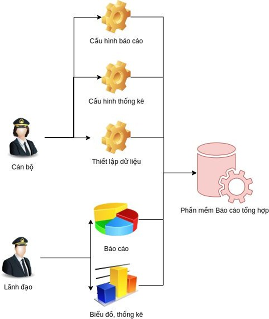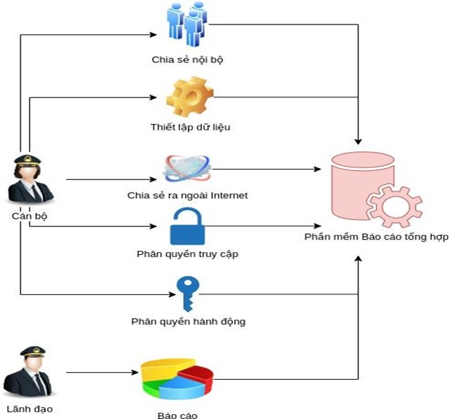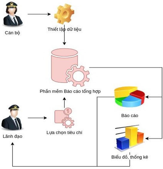 Lãnh đạo căn cứ theo nghiệp vụ, sẽ lựa chọn tiêu chí. Cán bộ vận hành sẽ căn cứ vào tiêu chí được chọn để thiết lập ra các nguồn dữ liệu và báo cáo