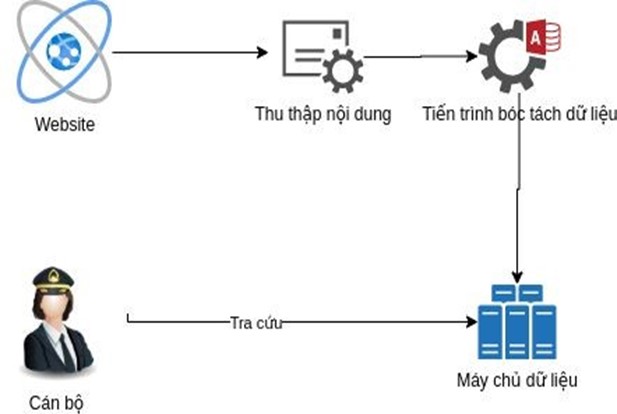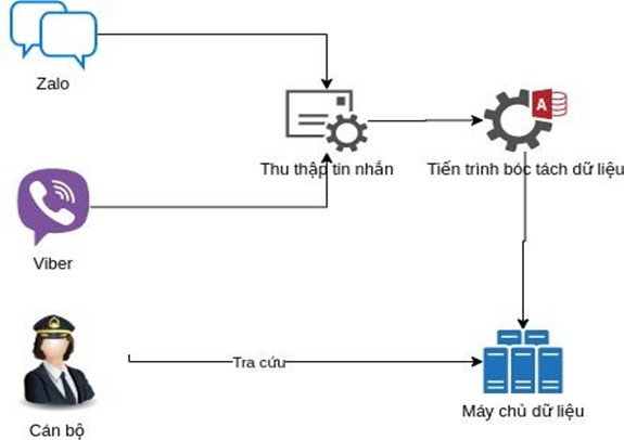 Cán bộ sẽ thiết lập các địa chỉ tài khoản nguồn và định dạng nhận biết các nội dung sẽ thu thập bởi robot, khi có nội dung chat mới robot sẽ tự động lọc và lấy dữ liệu với các nội dung chat cần thu thập. Cán bộ sẽ nhận được thông báo khi robot thực hiện thu thập xong. Cán bộ sẽ vào rà soát và xác nhận hoặc chỉnh sửa dữ liệu nếu thấy cần thiết.